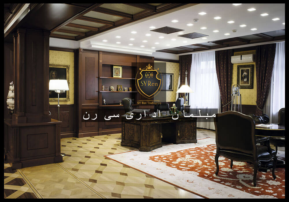 چیدمان مبلمان اداری | طراحی میز اداری کلاسیک | ست اداری چوبی